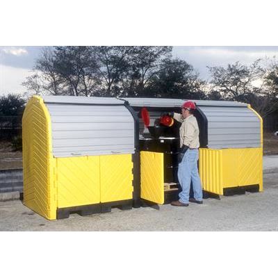 • Multiple 4-drum compartments offer flexible usage for a broad range of operations, including: storage of virgin chemicals, active hazardous waste collection, and storage of spill response supplies. Internal walls and separate sumps allow materials to be segregated.