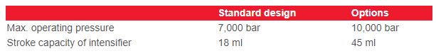 Systems for the generation of very high pressures (up to 10,000 bar / liquids or gases) based on hand pumps, electrical piston pumps or intensifiers.
