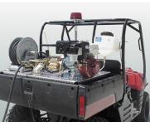 CAT PUMPS offers a variety of ultra-high-pressure, low flow, portable foam fire fighting units for effective control of wildland brush and grass fires. These ultra-high-pressure, foam fire fighting units are lightweight and extremely dependable. They conserve water and permit the fire fighters easy access to remote wildland fire fighting areas. Our low-flow, ultra-high-pressure, foam fire fighting units allow the fire fighters to stay on the fire line longer for more effective control of wildland grass and brush fires. The adjustable foam injection system delivers precise metered foam, is easy to use and very economical. Our compact design permits these skid-mounted, ultra-high-pressure, portable foam fire fighting units to be mounted onto an ATV, pick up truck or UTV all terrain utility vehicles.