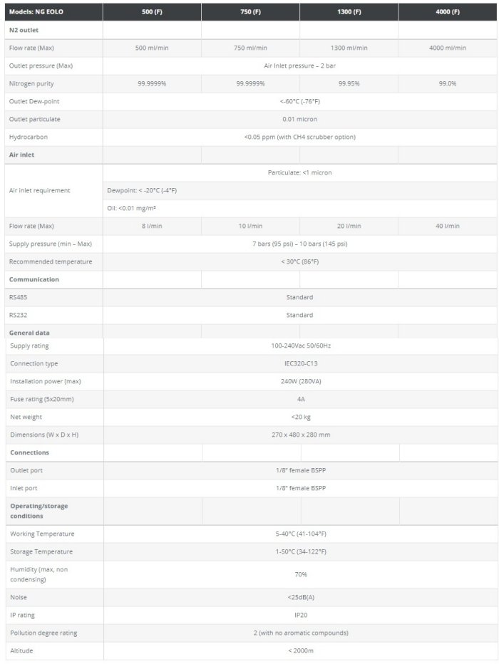 NitroGen - Model Series NG Eolo -Ultra High Purity Nitrogen Generator