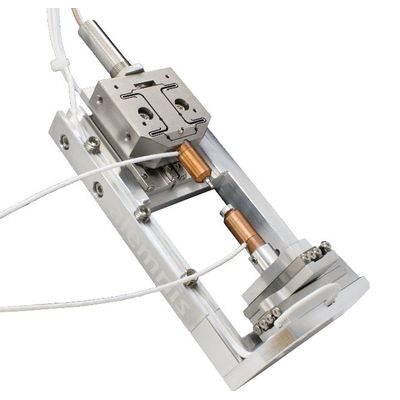 - A second 1-axis piezotransducer (SmarTip sensor) operating as load sensor with very large bandwidth (from a few Hz to 10 kHz, 30 µN RMS noise, 1 N force range. The SmarTip sensor replaces the standard load sensor. The SmarTip operating as actuator and the SmarTip operating as load sensor can be mounted either on the tip side or the sample side;