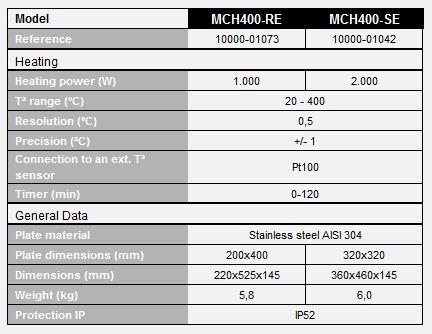 Digital hot plate universal, for all kind of applications. Very easy of use; Temperature controlled by microprocessor, by means of an integrated PT100 sensor, that confers high reliability. Digital Display LCD backlighted indicating the selected and actual temperature and timer. Membrane push-button control. Automatic restart after unexpected shut down keeping the same parameters as before the incident. An incident sign appears on the display.