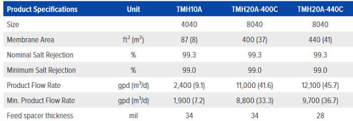 Toray - Model TMHA Series -Ultra Low Pressure Brackish Water RO Membrane