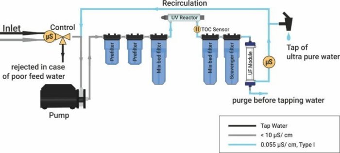 ultra pure water quality: 0.055 µS/cm; Type I