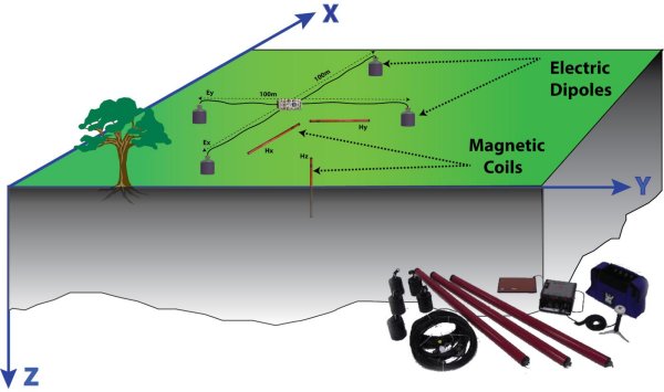 The Earth`s magnetic field varies continuously in both time and space. By measuring at ground level sites time variations of the magnetic field and the electric field, the ratio of the electric and magnetic variations provides a measure of the electrical resistivity. Depth information is obtained by measuring the time variations over a range of frequencies. High frequencies penetrate the Earth to shallow depths only, while low frequencies penetrate deeper. Information is obtained from a few hundred metres depth to hundreds of kilometres depth.