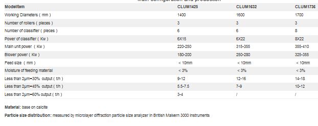 CLUM ultrafine vertical mill is a new type of ultra-fine grinding equipment integrating powder grinding, grading, conveying, secondary powder selection, and finished product packaging. It can be widely used in large-scale ultra-fine dry powder processing of non-metallic minerals such as calcite, marble, limestone, dolomite, barite, talc, kaolin, dolomite, wollastonite, gypsum, feldspar, pyrophyllite, etc. The fineness D97 of the finished powder produced can reach 3000 meshes, and the content of 2μm can reach up to 60%. The product has high whiteness, narrow particle size distribution, and good particle sphericity.