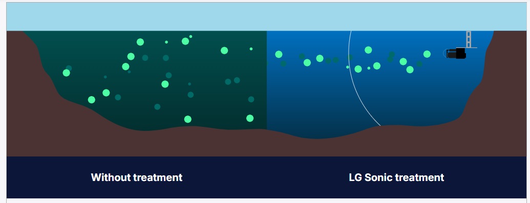 Ultrasound refers to sound waves with frequencies higher than the upper audible limit of human hearing (20 kHz). At specific frequencies, these sound waves can be used to control algae growth. There is a distinction between high-power ultrasound that causes cavitation and the low-power ultrasound used by LG Sonic. Cavitation is caused by the formation of micro-bubbles that collapse, generating intense heat.