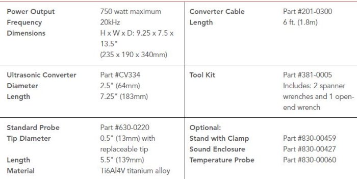 The VCX 750 is a powerful and versatile ultrasonic liquid processor. Using a variety of accessories, the system can process a wide range of sample types and volumes for many different applications. The VCX 750 is microprocessor based and programmable. Intuitive screens are user friendly and easy to navigate. The 750 watt power supply has the capability of operating our largest assortment of horns and accessories. A standard 1/2" diameter probe (50 – 250mL volumes) with replaceable tip is included with the system. Part No. VCX 750A can be used to order the system without the standard probe.