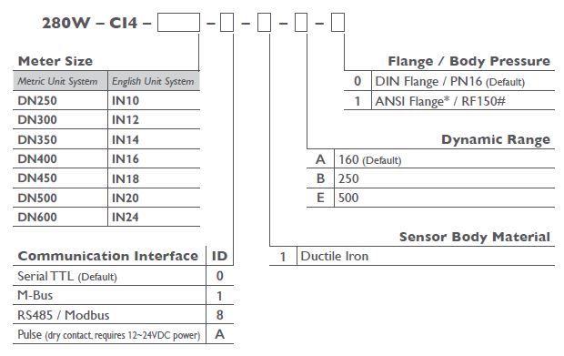 The technical specification of the 280W-CI water meter meets the ISO 4064 (or OIML R49) water meter standards for Class D accuracy, and exceeds the AWWA C715 water meter standard. The operational temperature ranges from 0.1°C (32.2°F) to 60°C (140°F) including safety temperature up to 85°C. The large display can be set to display the flow total, flow rate, working time, leakage alarm, reverse flow, and more. The meter also has a remote readout which could be configured as pulse, M-Bus, RS485/Modbus, pulse, 4-20mA, BACnet, or, wireless.