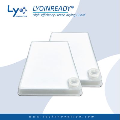 LyoInReady® High Efficiency Freeze-Drying Guard tray is ready to use, disposable, fully enclosed container that use PTFE membrane technology to contain and protect lyophilized active pharmaceutical ingredient (API) during the entire freeze drying process. It is compatible with most of the freeze-drying processes and equipment and significantly reducing cleaning time and verification costs. The tray's bottom features a flexible PP flexible bottom film maintains close contact with shelf, ensuring efficient and uniform heat transfer. Utilizing PTFE membrane technology, the breathable membrane combines excellent high vapor transmission rates with effective prevention of product splashing or overflow, eliminating cross-contamination risks while enhancing product recovery rates.
