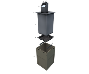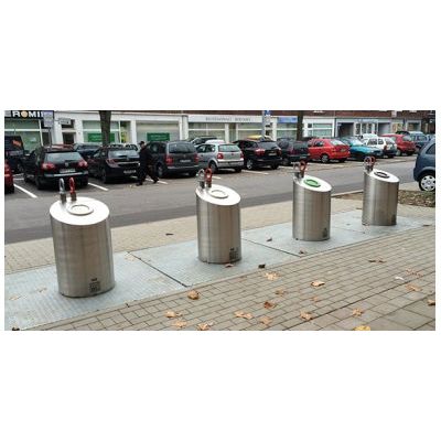 - collecting container made of sturdy steel, sheet construction, screwed together