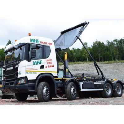 Versions available: Hydraulic Wireless Remote, Hydraulic Dual-Lever Control. Body: CHEM and DIN standard versions (up to 7m), CHEM and DIN standard Containers. Weight: 475kg.