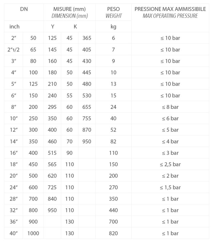 - Body: GG25, AISI 304, AISI 316, BRONZE
