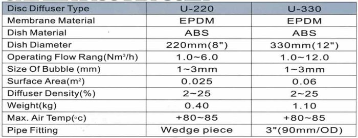Equally distributed micro pores on the diffuser membrane, consistently product 1-3mm fine air bubbles that increase the surface contact area with water, greatly increasing the oxygen transfer efficiency.