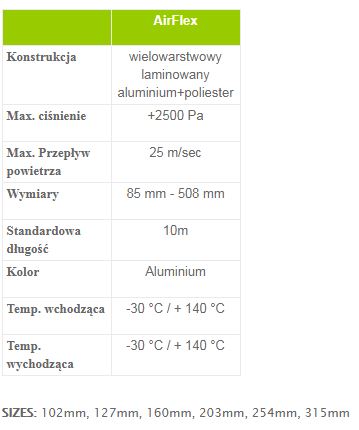 The ducts used in air conditioning and ventilation industry are applied to connect the metal sheet channels, e.g. with diffusers or expanding boxes. They are used to distribute warm air from the fireplace, and in the heat recovery systems.DescriptionThe ducts are laminated, light, easy to install, resistant to high temperatures (from -30 to + 140 degrees C) and pressure, intended for transport and distribution of air conditioned air in the air conditioning, heating and ventilation systems.