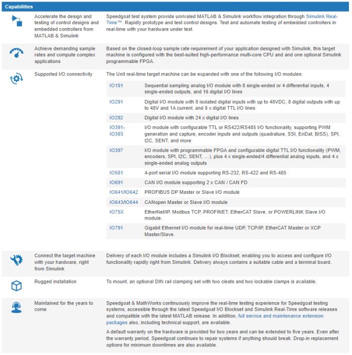 Like all Speedgoat testing systems, it provides unrivaled workflow integration with MATLAB & Simulink.