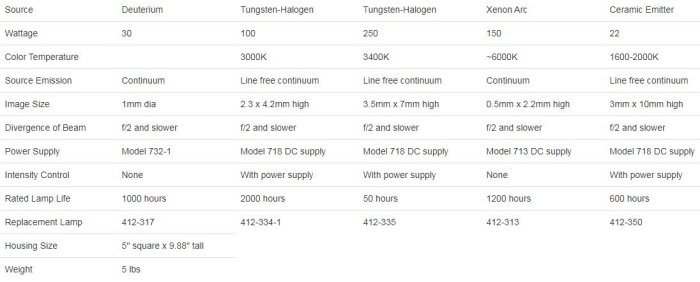 The Model 621 modular light source operates with a variety of light sources: tungsten, Xenon and IR emitters. It is a complete system with forced air cooling, lamp mount module, housing, condenser, power supply and cables. The Model 621 mounts directly on the 5-inch diameter entrance slit of any McPherson spectrometer and may be adapted to other spectrometers or for standalone operation. Easy access to the housing interior and simplifies lamp and socket exchange. Adjusters for focus and alignment are externally accessible. Safety interlocks prevent shock hazard while power is applied. Forced air cooling, compartment reflectors and airflow baffling insures even heat removal from the system. This optimizes the sources stability and longevity.