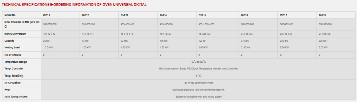 - Temperature is displayed by Digital LED with SV and PV display at front of the oven.