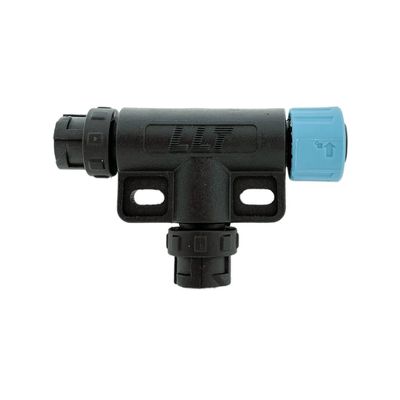 Use tees to daisy-chain a 0-10v dimming signal across up to 50 lights. The M12 connectors on tees mate to Universal Dimmers, Extension Cables, and adapter cables. Tees can be used to daisy chain 0-10v signals to lights or to split signal cables into two directions. IP67 sealed waterproof design, UV resistant, Push-lock connectors rapidly and securely mate