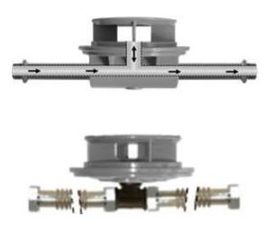 Tee PVC fitting (male 1"¼) with 2 stainless steel flexible tubes lenght 30 or 45 cm (female fitting 1"¼)