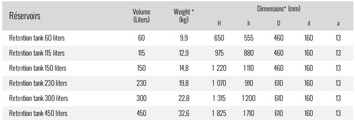 - Tanks from 60 to 450 liters; Pipe fittings from DN 32 (1"¼) to DN 65 (2"½)