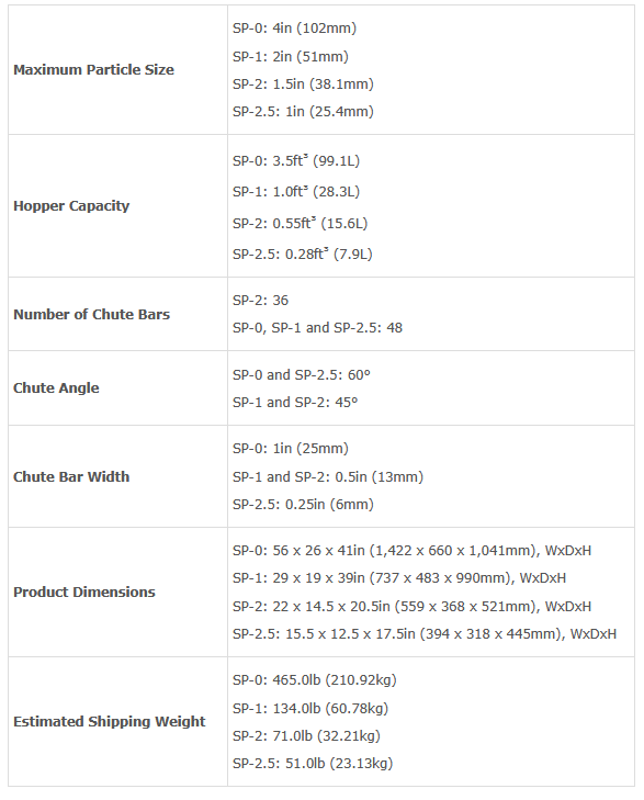 The SP-0 and SP-1 models allow representative splitting of sample volumes and particle sizes not available anywhere else.