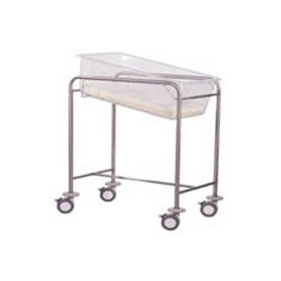Stainless steel rolling cradle, ABS shell & Mattress. Structure stainless steel, non magnetic. Shell strengthened the below the shell is grooved for better ventilation mattresses. Inclinaison possible two sides of the shell waterproof mattress. Coated wheels (diameter 100 mm) with brakes. Exterior Dimensions: Length 75 cm, width 44 cm, Height 106 cm.