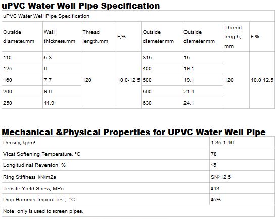 Traditional pipe service life is 20-30 years. Our water well uPVC casing pipes service life is at least 50 years at a set temperature and pressure.