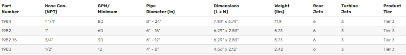 The Pipe Wolf nozzle is an extremely aggressive specialty tool perfect for total blockages that are made from organic material. A hardened, tapered head with sharp edges utilizes turbine technology and spins approximately 10,000 rpm’s, boring a hole and opening up most any blockage. This nozzle comes standard with one-piece ceramic inserts, can be used with recycled water and delivers in emergency situations. An essential tool to have!