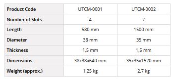 The UTCM-0001 Packaged Cement Tube Sampler is made of stainless chrome and used for collecting cement samples from packages. The UTCM-0002 Bulk Cement Sampler is made of chrome and used for collecting cement samples from bulk storage or bulk shipments. UTCM-0002 Sampler consists of 2 concentric tubes and each tube has slots. The inner tube rotates to close the slots and take the sample.