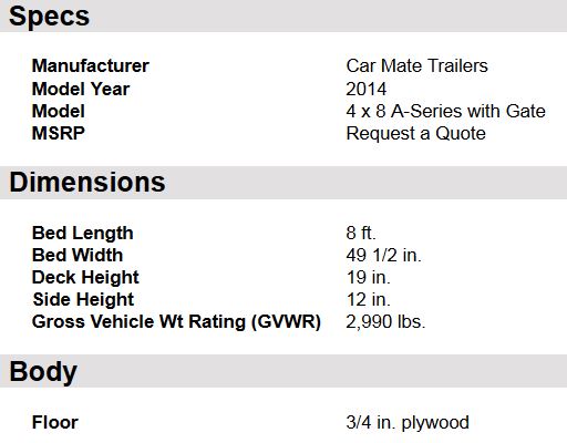Car Mate - Model 4 x 8 A-Series -Utility Trailers