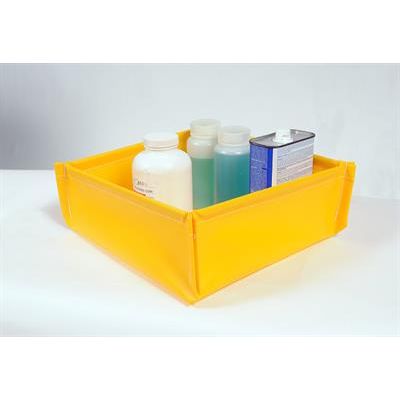 One piece units - no pieces or parts to lose. 18 oz. PVC fabric provides durability and chemical compatibility. Folds and rolls into a small compact size. Available in six sizes to work with almost any application. Utility tie included provides easy storage and portability. No straps or sidewalls to set up.
