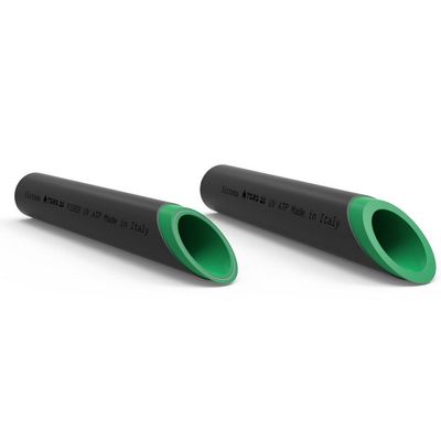 TORO 25 UV system consists of pipes made of Random Copolymer Polypropylene, externally coated with a special UV layer in additived PP-R, able to ensure protection from ultraviolet radiation. TORO 25 UV system is suitable for the adduction of hot/cold water for outdoor installations, so it is recommended for external applications that provide contact with sunlight and it is suitable in all application fields of the usual TORO 25 pipes series. TORO 25 UV system range includes monolayer PP-R pipes (PP-R 100 and PP-R 125) and three-layer PP-R EvO pipes, Random Copolymer Polypropylene with special and improved crystalline structure, reinforced with glass fiber, classified as TORO 25 FIBER EvO UV (fiber → glass fiber ; Evo → PP-R EvO ; + UV). The range includes PN20 pipes with SDR6, SDR7,4 and SDR9. TORO 25 UV and FIBER EvO UV pipes are perfectly compatible with all TORO 25 system accessories.