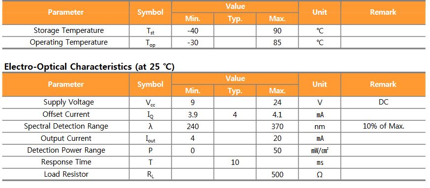 Features: Single Supply Voltage, 4-20 mA Current Output. Measure the UV Power from Sunlight.
