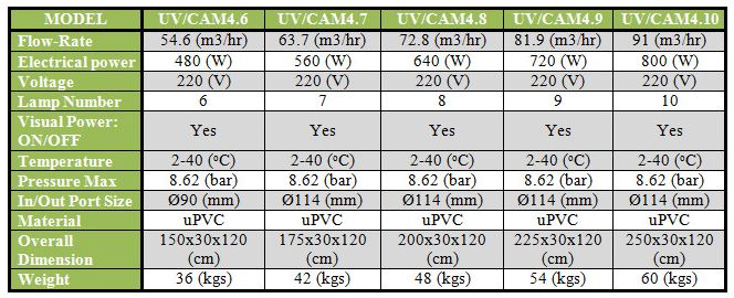 Camix - Model UV/CAM4 -UV Sterilizer, Material uPVC