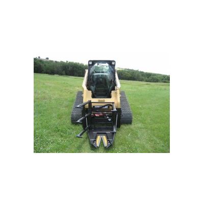Safe non-moving blades. No cylinder cycle times between cuts. Fast shearing for small brush diameter less than 8` diameter. Multi trees cut in seconds. Accumulate several trees & sprouts before dumping. Cuts at or below ground level. Long lasting high carbon steel blades. Blades are reversible for even longer wear. Replacement blades available. Light weight (500 lbs) makes it practical for any size skid steer. 2 pin quick hitch system to fit most skid steer loaders. All grapple pivot points are machined & greaseable for long life. Heavy duty tubular steel frame. Exceptional grapple power for clamping and holding accumulated sheared trees. Saves time and money.
