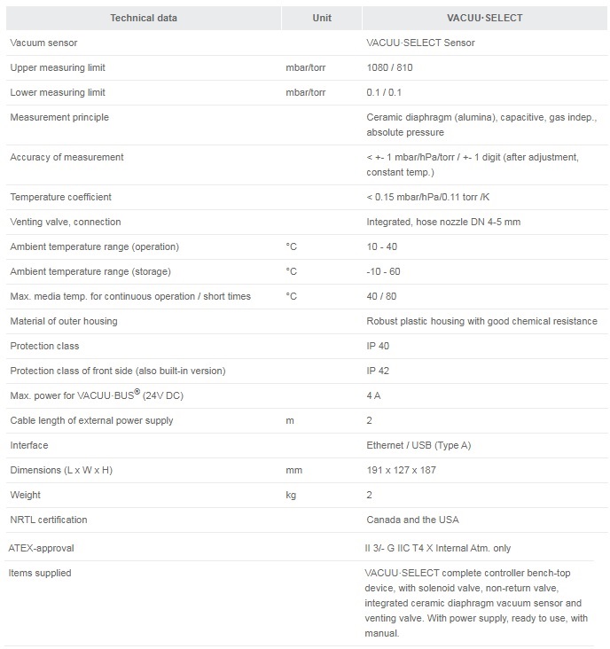 VACUU·SELECT - Complete Vacuum Controller Benchtop Device