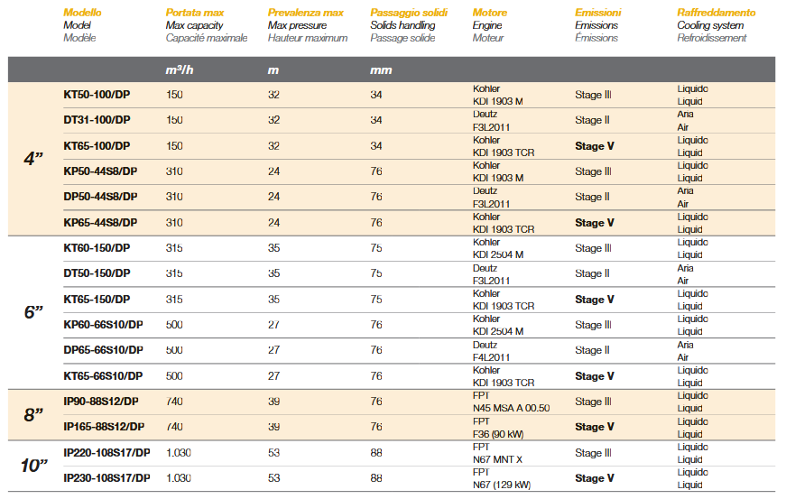 Vacuum-assisted motor pumps built on a frame with wheels and built-in tank, parking jacks, electric start with battery and motor protection control unit. The built-in depressor allows rapid priming and the possibility of pumping water even in the presence of a high percentage of air. Priming is also totally automatic and the pumps have the abiBty to work dry.
