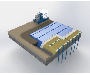 The vacuum consolidation system consists of the installation of a drainage system (PVD) and Horizontal Drains, an isolation system and vacuum pumps. Once initialized, the vacuum is quickly distributed in the soil through the drainage system, reducing atmospheric pressure and excess pore pressure, creating a pressure differential between the prefabricated vertical drains (PVD) and the pore pressure present in the soils. This difference in pressures causes the water to flow vertically through the drain, causing a consolidation effect.