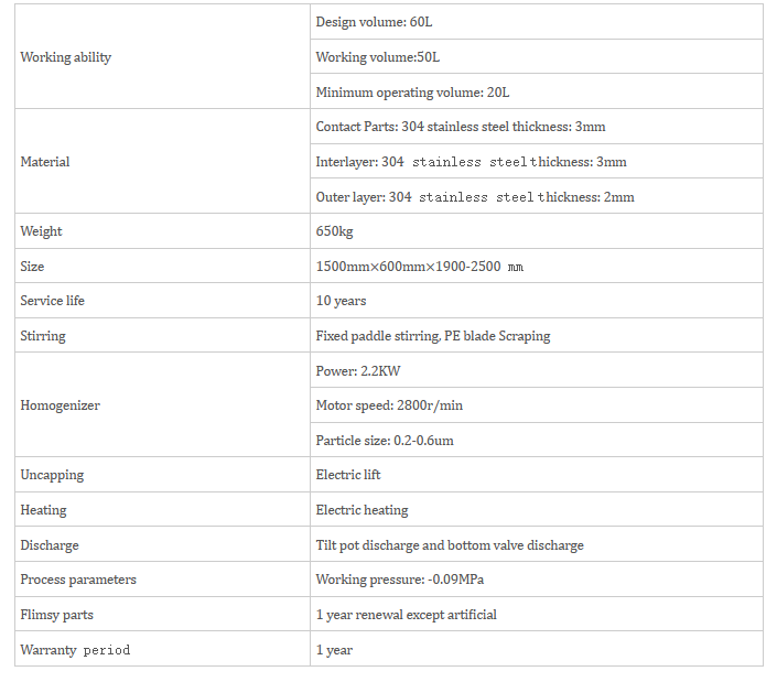 Vacuum emulsifying machine consists of vacuum homogeneous emulsifying machine, heating system, mixing system, vacuum system, electric lifting system, operation control cabinet, piping system(oil tank and water tank optional). It is the most suitable equipment to produce mayonnaise and other paste or cream .