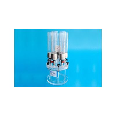 Stainless steel filtration unit. 6 x 500 ml for vacuum. The upper and under parts are manufactured from AISI 316 stainless steel and the cylindrical tubes are made of acrylic. Support for vacuum.