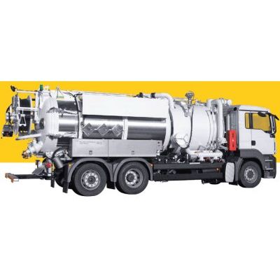 The KOKS EcoVac Combi vacuum/ jetting truck can be used for the suction,discharging and transportation of hazardous substances such as liquids, sludge, grease, oils, fuels and chemicals, but also for the high pressure cleaning and jetting of lines, tanks and sewers.