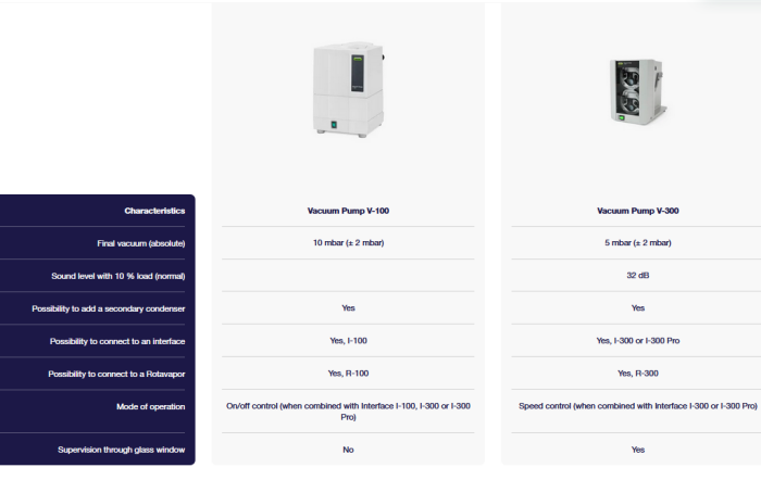The Vacuum Pump V-300 / V-600 enables you to adapt your distillations to your needs thanks to a seamless plug&play integration with the BUCHI Interface I-300 / I-300 Pro for automated speed control and the BUCHI Rotavapor® R-300 for full automation of all process parameters.