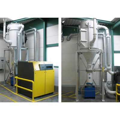 The system consists of branched, narrow ducting. Suction connections are supplied at pre-determined points to which a flex-hose can be attached by quick couplings. A variety of suction nozzles is available for different applications. The dust flows into the separator through a duct.