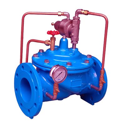 Main valve uses globe design for superior control characteristic. CanLeaf Top and Bottom seat rings are used to guide the stem and diaphragm assembly for extended life time and stability. CanLeaf High strength ductile iron body used for lowering the weight and improving long term durability. Stainless steel used for seat and disc retainer ring for corrosion resistance. CanLeaf Easy maintenance without having to remove valve from the main line. CanLeaf Nylon reinforced rubber diaphragm for long term service. Drop tight shut-off capacity. CanLeaf Various pilots and accessories available to offer a large range of control applications. CanLeaf All iron parts are coated inside & outside with fusion bonded epoxy for corrosion resistance per AWWA C550. CanLeaf Meet standards BS EN 1074-5, ISO 5208, BS EN 12266-1, BS EN 558-1, BS EN 1092-2.