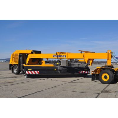 The Vammas SB 5500 has a quick detach plow and a transporting broom, which allow the Vammas to be stored in any maintenance facility or transported on public roads. The one C-11 Caterpillar engine provides 420hp for sweeper power supply. The 46in (1170mm) diameter broom rotates at a maximum of 720 rpm. The air blast folds down from the body of the Vammas SB 5500, producing air speed in excess of 250mph on the surface.