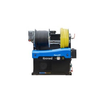 The AquaJet is suitable for unblocking and cleaning of drains and sewers up to 350 mm. Thanks to its very compact design and low weight the AquaJet fits in almost any lightweight van or pick-up. The steel hose reels and control panel are mounted at the optimum working height, giving you ultimate operational comfort. The AquaJet is available in various configurations and can be enhanced with many options such as RioMote radio remote control, RioPulse pulsator system and hydraulic hose reel drive.