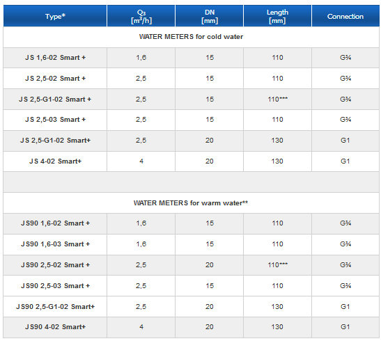 Js Smart+ - Model DN15-20 -Vane Wheel Single Jet Dry Water Meters