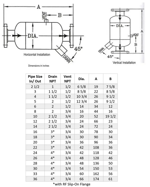 But, if you want a horizontal flow unit, and you have a low liquid load at all times in your piping, then the type DSL Model is what you need. Please contact us for help in selecting the right model and size for you.
