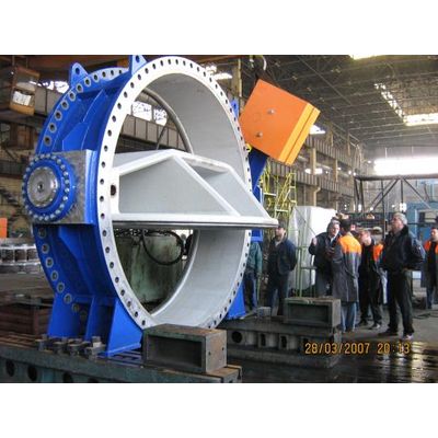 The standard line of VAPTECH Butterfly valves cover a diameter range from 300 to 1400 mm and pressure ratings pf 6, 10, 16 and 25 bar. The standard valve actuation is realized with a hydraulic cylinder and is closed by counter weight. Outside of VAPTECHs’ standard product, butterfly valves are developed with specific pressure ratings of up to 40 bar and diameter up to 5000 mm. Depending on the relation between the inlet diameter, pressure and water speed, the rotor is designed as a disk or as a lattice. The valve function can be alternatively realized with a double acting hydraulic cylinder, an electrical actuator or manualy with a hand-wheel. Additionally the valve can be equipped with upstream and downstream pipes, bypass systems, hydraulic pressure units, aerating - deaerating devices, penstock rupture devices, and digital control systems.